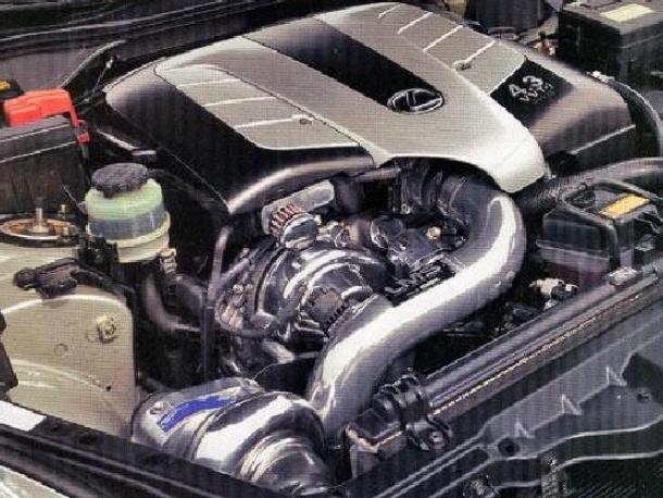 Motor Specs: 4.3L V8 engine Exhaust Specs: Blitz Realize TT exhaust system Other Mods: Mandrel bent bead-rolled 6061 aluminum Jet-Hot treated custom intake piping, polished engine pieces, black turbo hoses, dual intercooler fans, polished blow-off valve, Denso spark plugs, TEIN CS adjustable coilovers, WALD body kit, Aeroshield clear protection kit, Bridestone tires, Brembo Gran Turismo 14 inch big brake kit, Luxury Motorworks remote top and starter