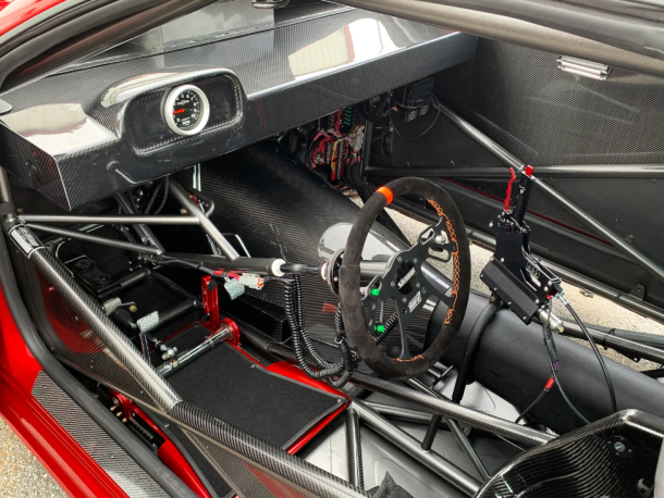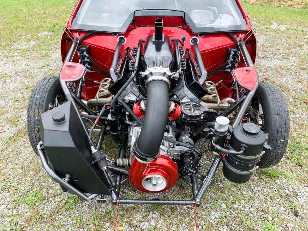 Lloyd Wofford had B&B Race cars build him one of the baddest ProCharger machines around. 25.3 spec chassis designed to run in the 4.0 range in the LDR class. Power is supplied by a 588 cubic-inch, all-billet powerplant from Kris Nelson at Nelson Competition Engines — a very similar combination to that of Mark Micke’s and Jason Carter’s Pro275 Malibu — with a billet Visner intake manifold, Billet Atomizer 700 injectors, and FuelTech FTSpark ignition, controlled by a FuelTech FT600 wired by Michael Bunton. A ProCharger F3-136 is spun by a Chris Alston’s Chassisworks gear drive to provide the boost. The power is transmitted through a three-speed M&M Turbo 400, converter, and shifter to a Mark Williams nodular full-floater rearend housing. B&B fabricated the custom 4-link system, and paired it with Santhuff shocks and struts all the way around. The Mickey Thompson tires ride on blacked-out RC Components wheels at all four corners.